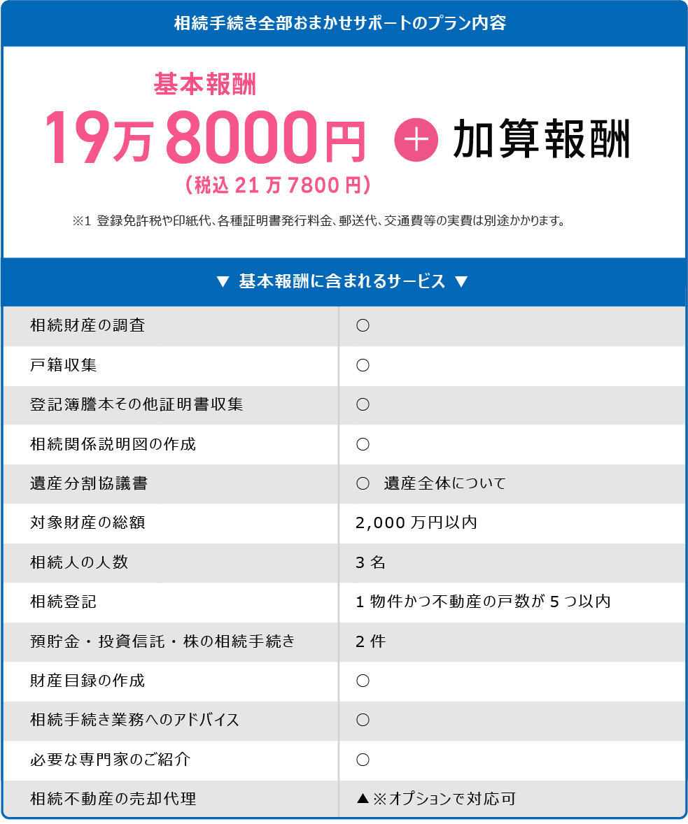 ※2 登録免許税や印紙代、各種証明書発行費用、郵送代、交通費等の実費は別途かかります。※3 相続開始時点の債務等を控除する前のプラスの財産の総額となります。